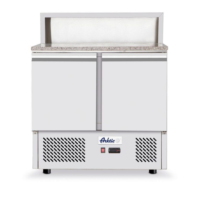 Die robuste Edelstahlstruktur des Tisches bietet nicht nur hohe Haltbarkeit und einfache Reinigung, sondern trägt auch zur Ästhetik jeder Profiküche bei. Die Konfiguration mit drei Glastüren ermöglicht einen schnellen und einfachen Zugriff auf die Zutaten und optimiert so den Arbeitsfluss in der Küche. Darüber hinaus passt dieser kompakte Tisch mit seinen Abmessungen von 1400 mm Länge, 700 mm Tiefe und 1020 mm Höhe perfekt in enge Räume, ohne die Lagerkapazität von 248 Litern zu beeinträchtigen.